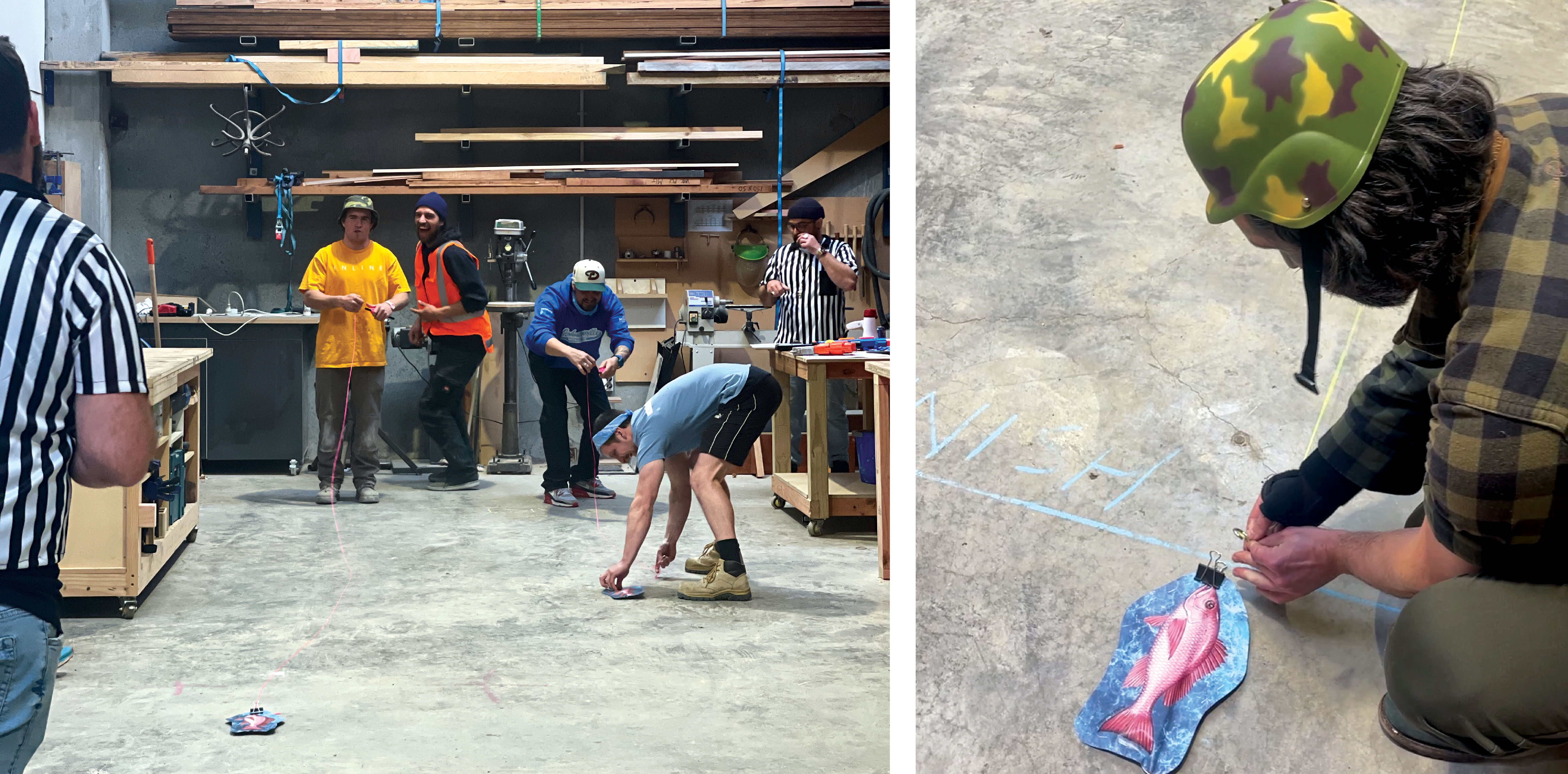 The Challenge: One team member ties the hook onto the end of the string line and runs it out to catch “the Fish,” while their partner carefully winds the fish in, maintaining proper tension and balance. Once the fish is fully wound, they finish with a half hitch knot - and get a sweet reward: a chocolate fish lolly hidden inside the “fish parcel.” Points are awarded for both the fastest time and the neatest, highest-quality string line.
